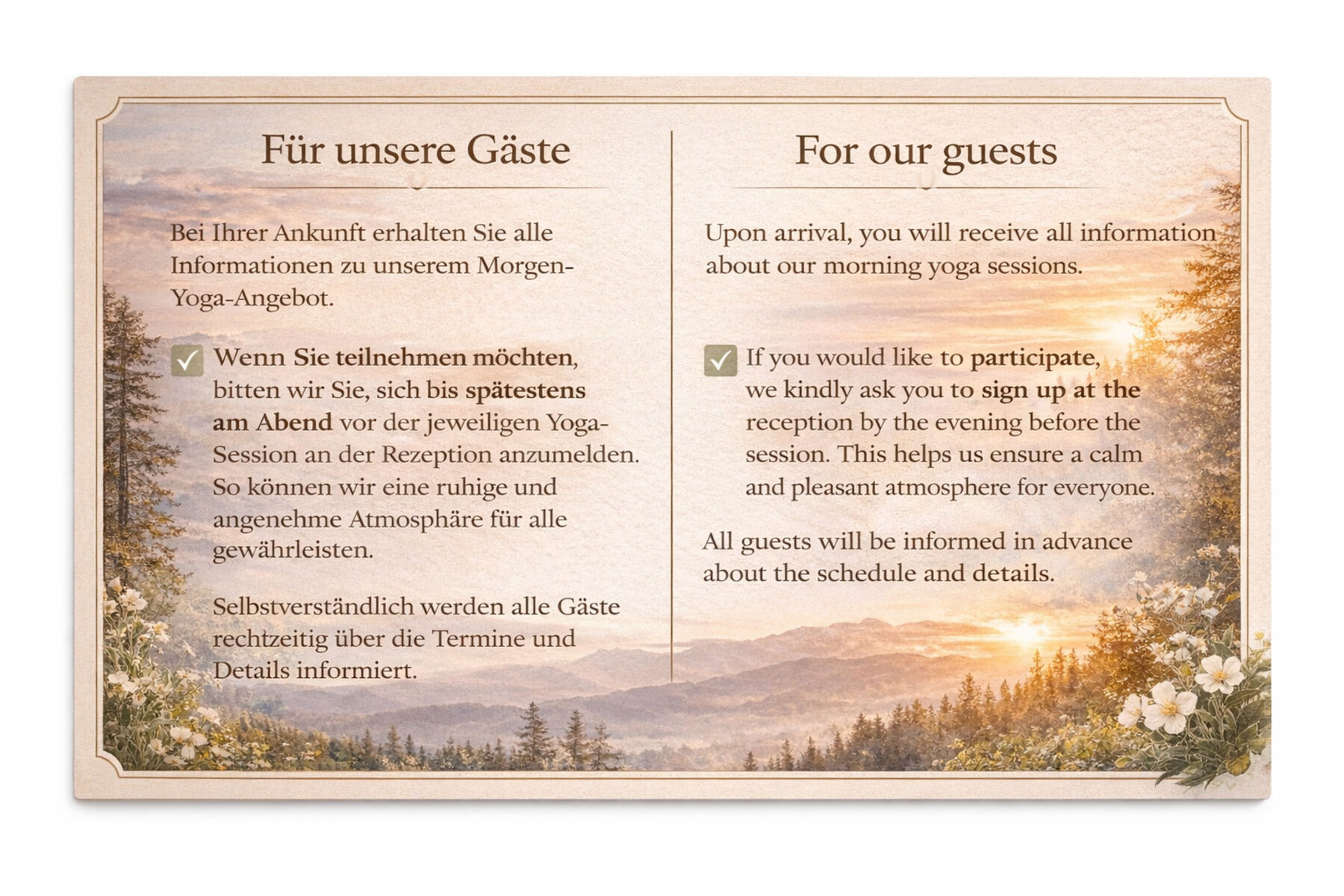 spätestens am Abend vor der jeweiligen Yoga-Session an der Rezeption