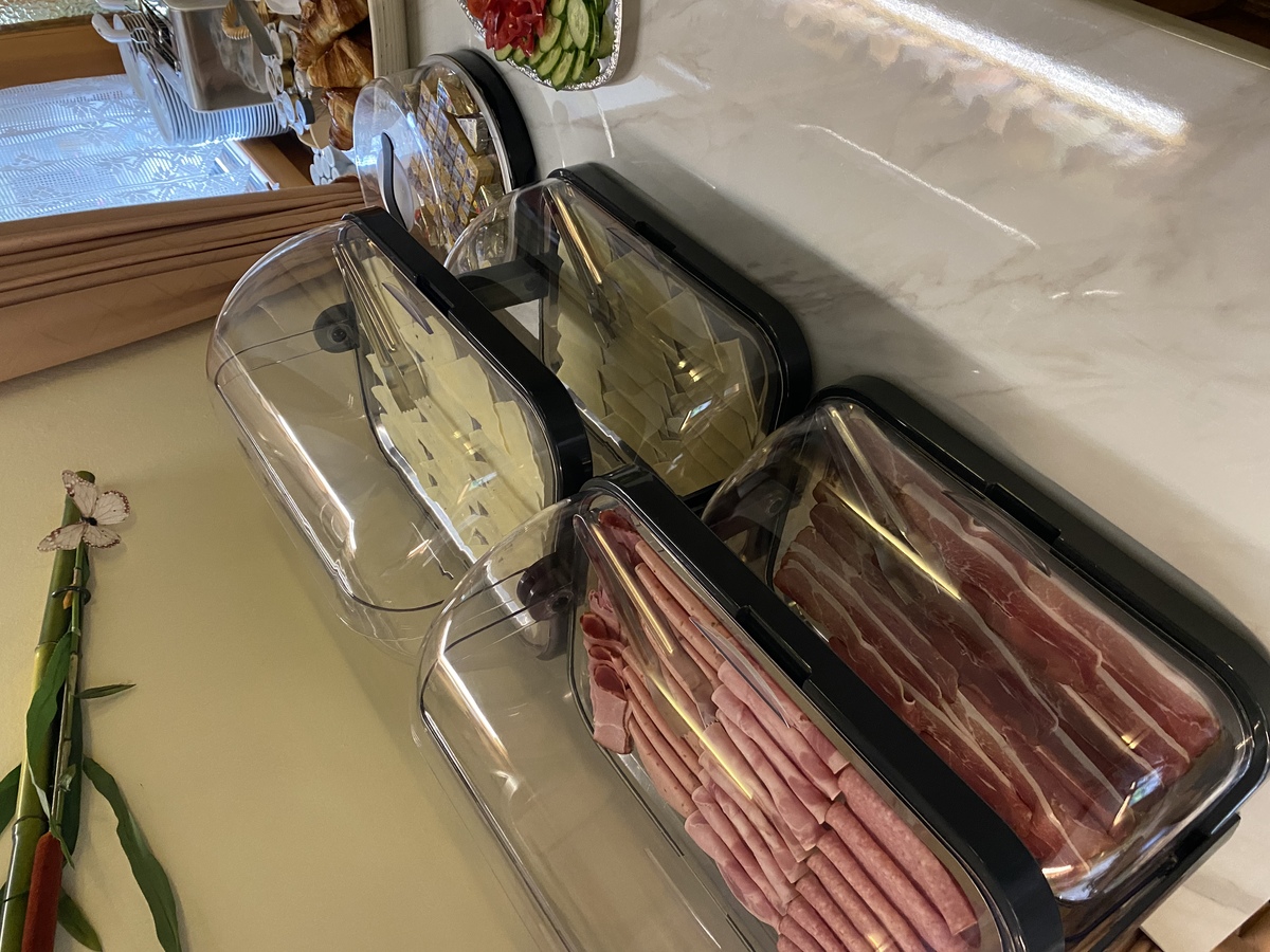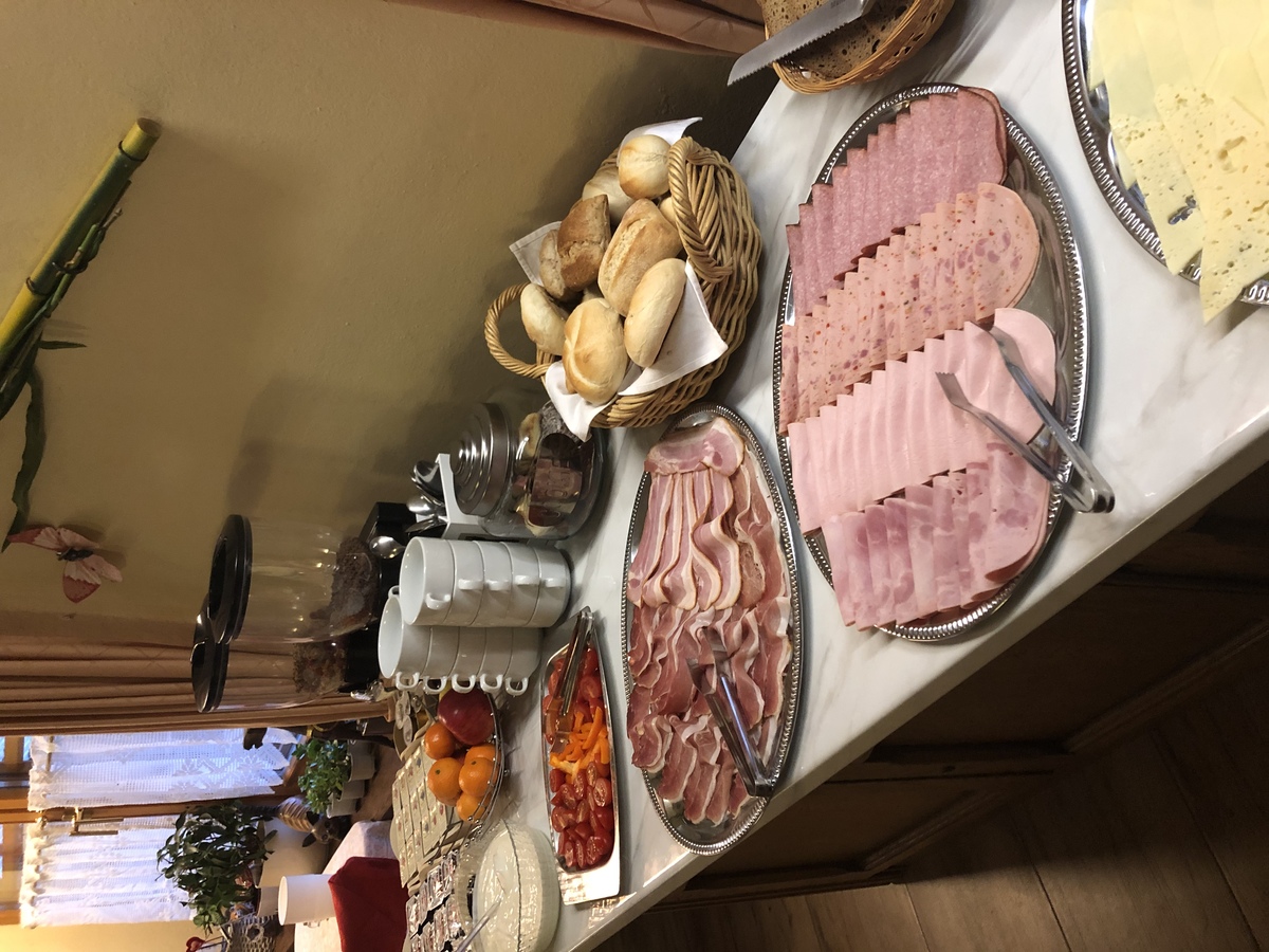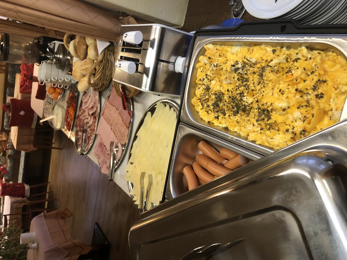 Von 07:30 bis 10:00 Uhr servieren wir ein Frühstück, bei dem nichts fehlen darf. Selbst gebackenes Brot, Croissants , Joghurts, Müsli... Sie haben die (Aus-)Wahl. Außerdem: frisches Obst, Wurst- und Schinkenspezialitäten und verschiedene Käsesorten. Ebenfalls erhältlich ist unser warmes Buffet, das verschiedene Eiersorten / Rührei, gekochte Eier/, Würstchen bietet.
