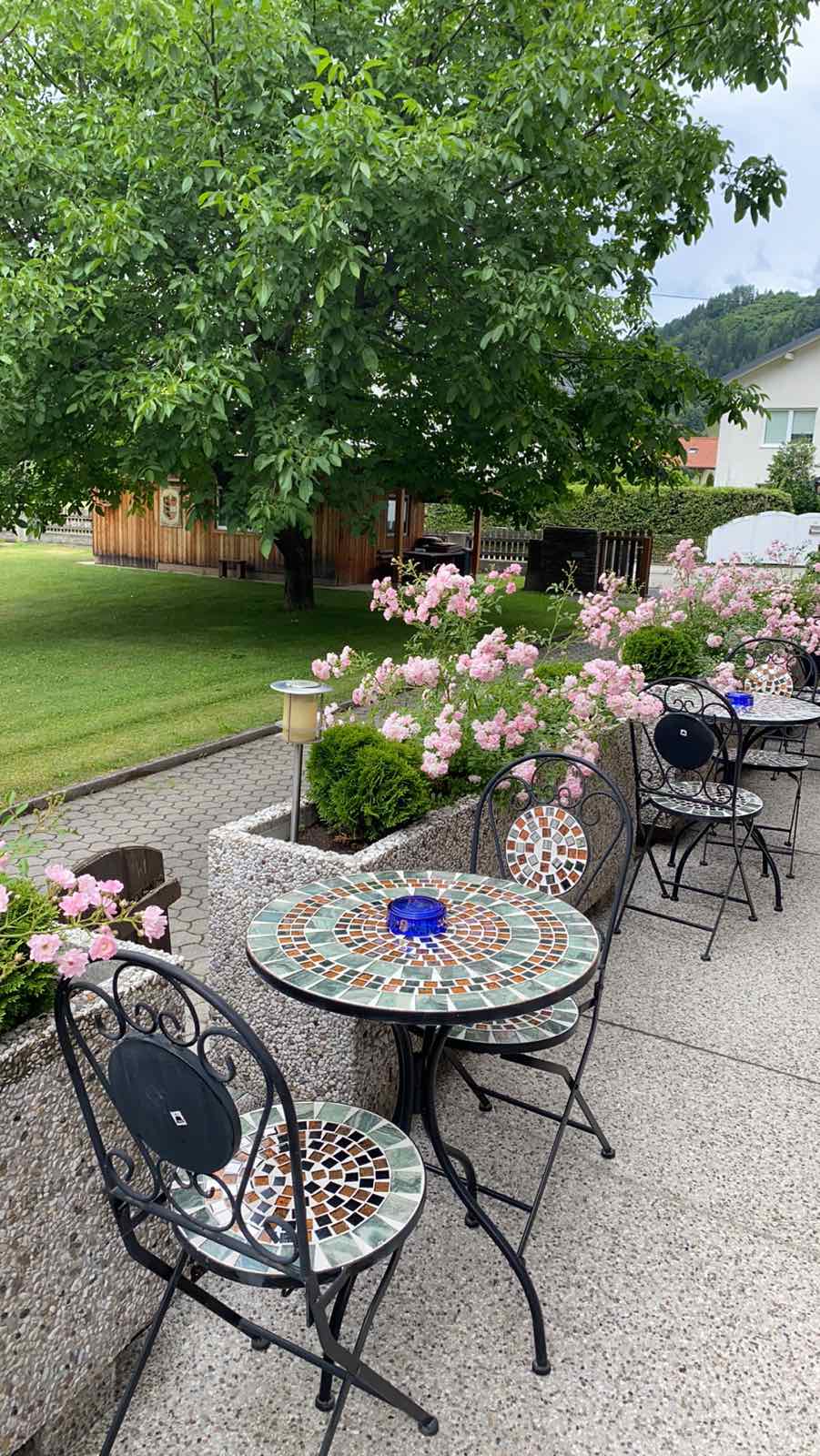 Haus Kärnten verfügt über eine große Terrasse, auf der unsere Gäste frühstücken, an lauen Abenden etwas trinken oder einfach nur die schöne Aussicht genießen können.