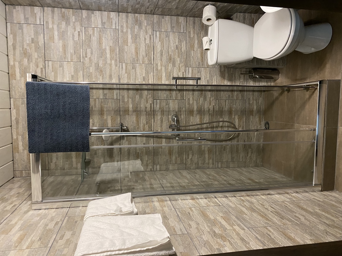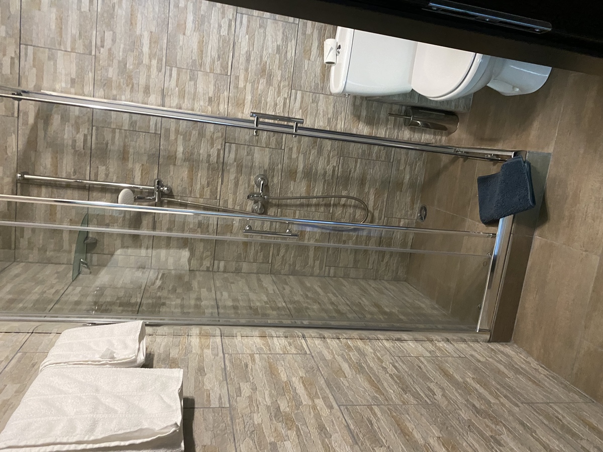 Die Wohnung verfügt über zwei große Schlafzimmer, eines mit einem großen Doppelbett, das zweite mit einem Doppelbett und 2 Einzelbetten.