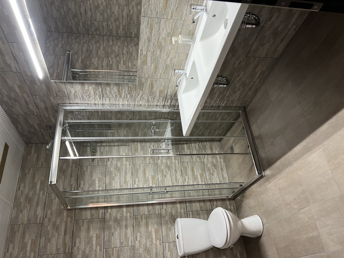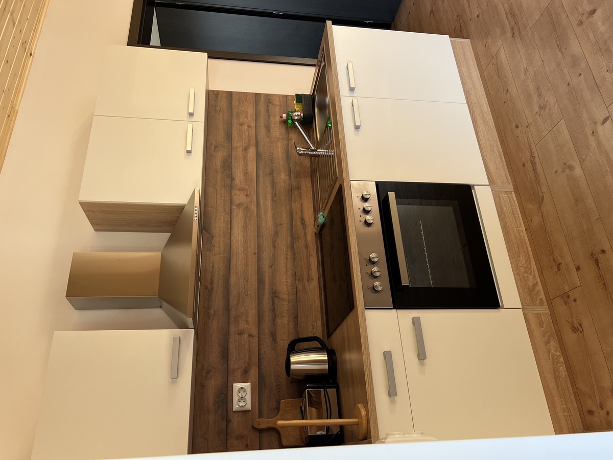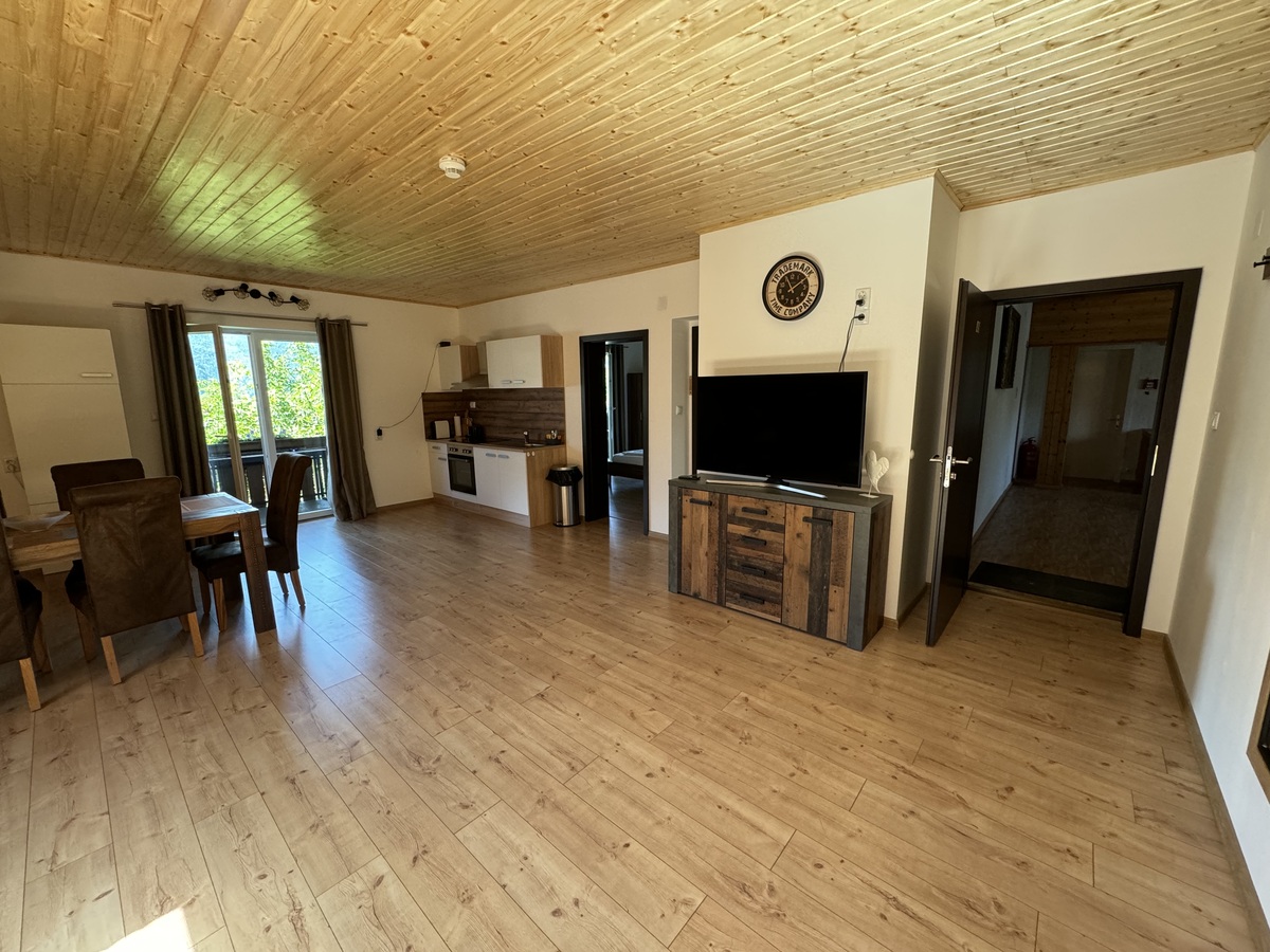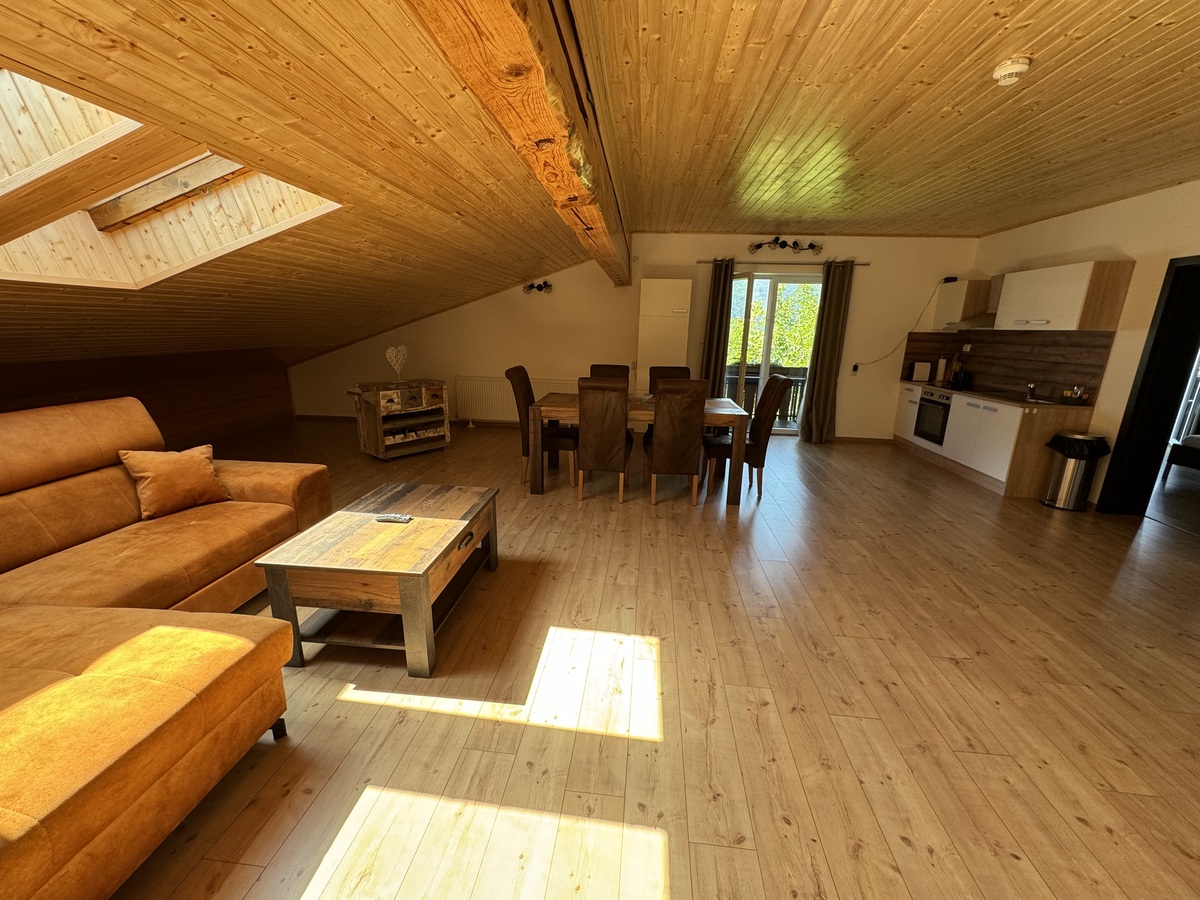 Großes Wohnzimmer mit Esstisch und Sofa, moderne voll ausgestattete Küche, Doppelbalkon, Badezimmer mit Dusche, Waschmaschine,kostenloser Parkplatz und Internet.